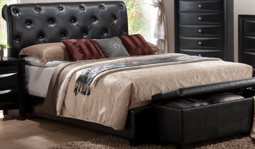 Queen Size Bed with Button Tufted Design in Black Leatherette Rating ,